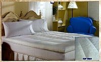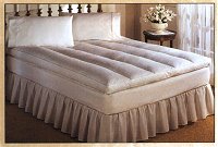 Sleep on Down is a baffled channel featherbed filled 5% white goose down and 95% white goose feather with a down topper sewn on top.